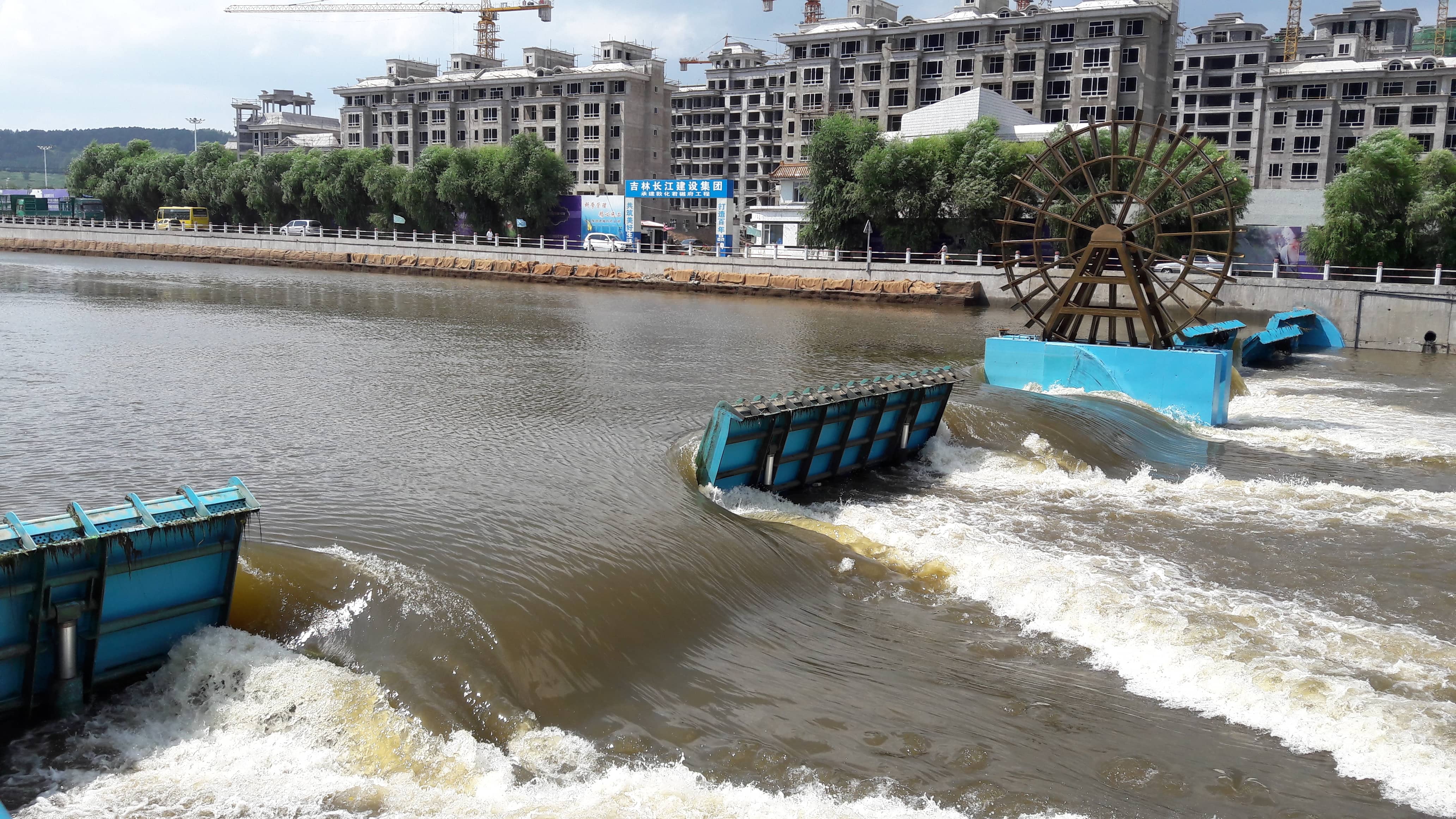 工程介紹:該工程采用景觀合頁(yè)閘將干流市區(qū)段構(gòu)建成連續(xù)生態(tài)水面,精致別樣的閘體,潺潺流動(dòng)的人工瀑布,綠意盎然的生態(tài)堤岸和靈動(dòng)活潑的水車,生動(dòng)地展現(xiàn)在居民眼前,并給周邊居民提供親水娛樂的場(chǎng)地。